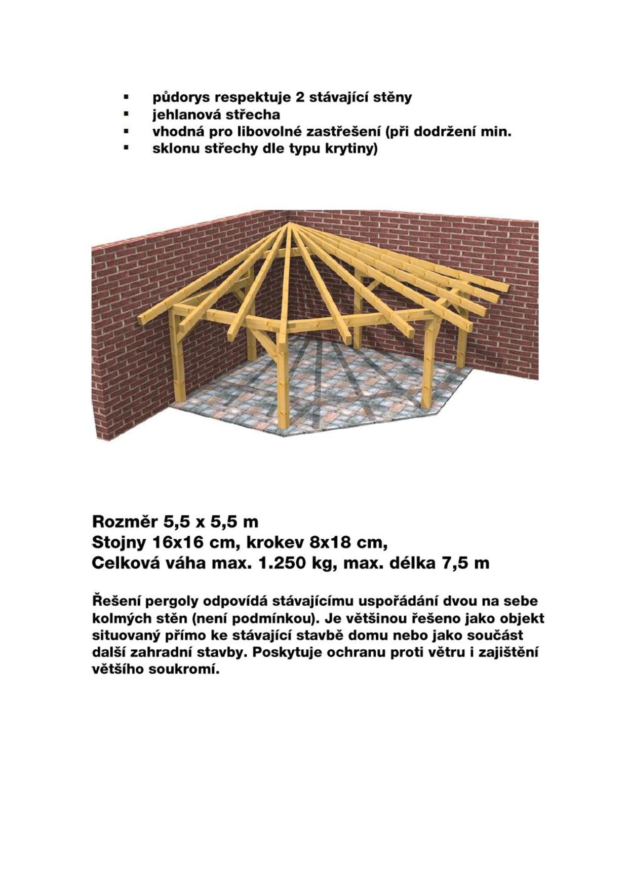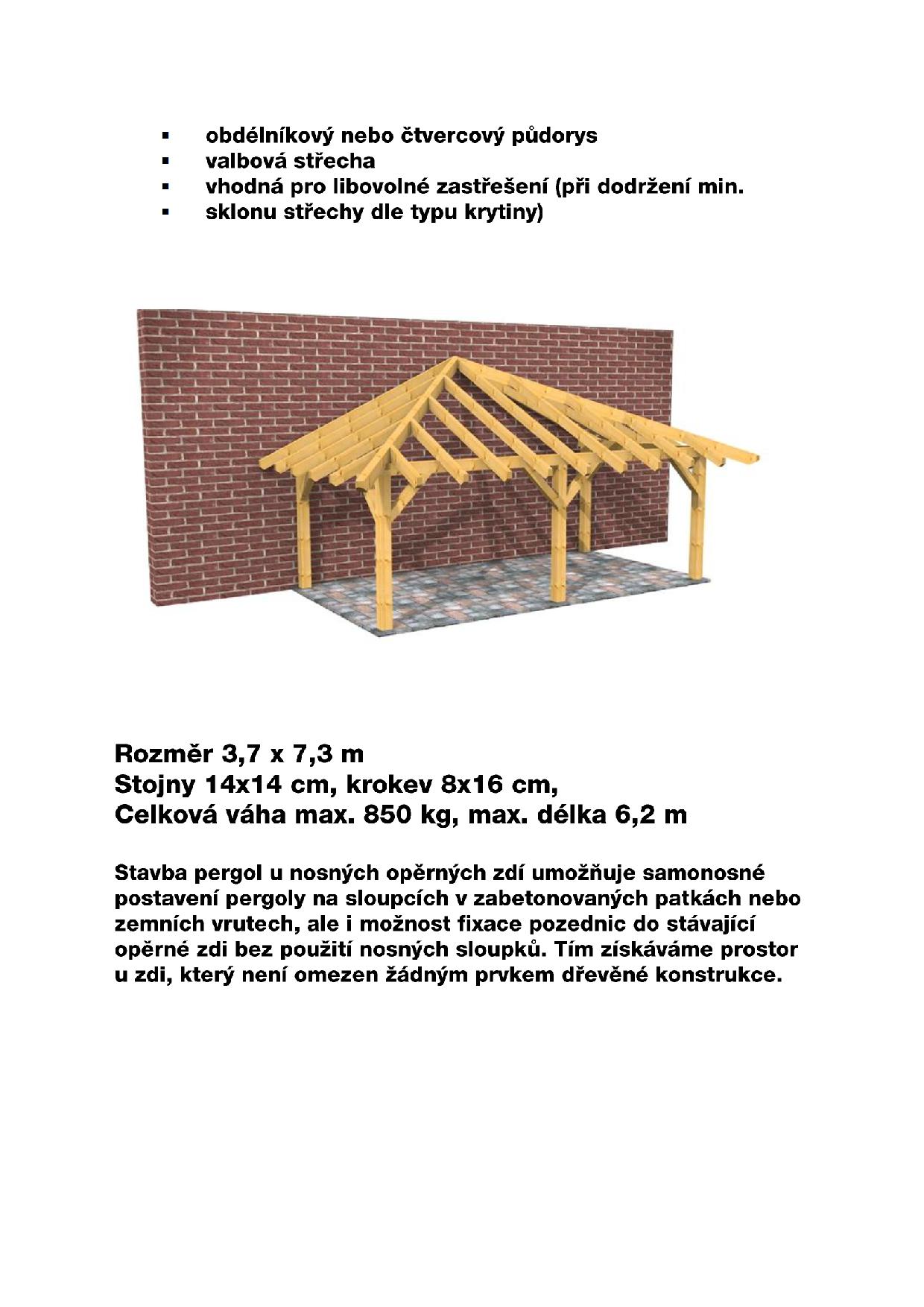 Design a rozměry naší standardní nabídky pergol si můžete přizpůsobit podle Vašich potřeb. Na výběr máte různé velikosti a typová provedení. Konstrukce pergol je stavebnicová, což umožnuje vlastní montáž zákazníkem.